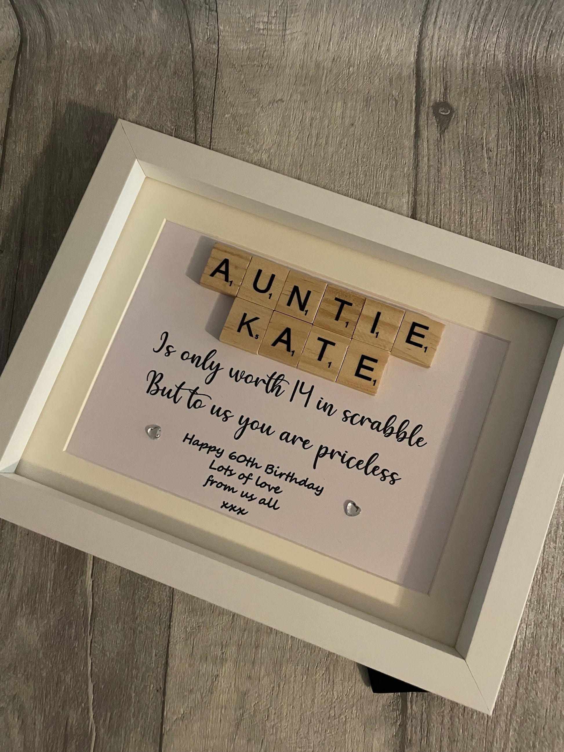 Auntie scrabble frame gift , gift for Aunty , personalised auntie gift, Mother’s Day gift.Birthday gift