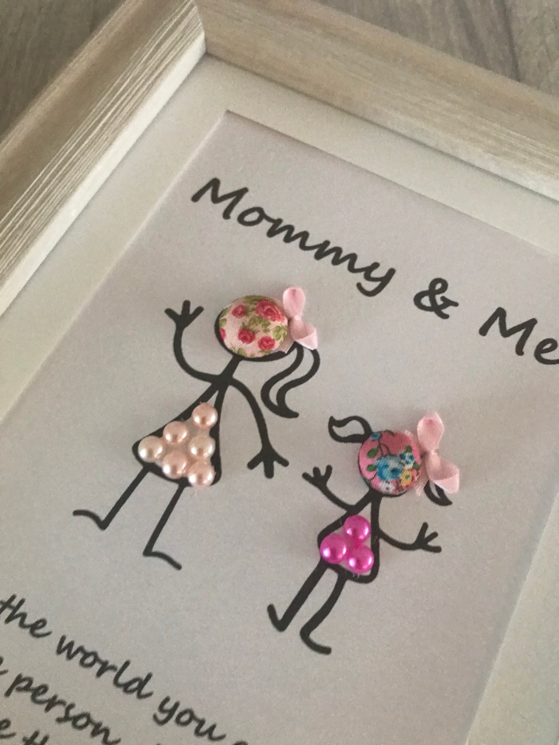 Gift for mom, button head family, stick figures family, Mommy and me, Mother’s Day gift, Mother’s Day frame