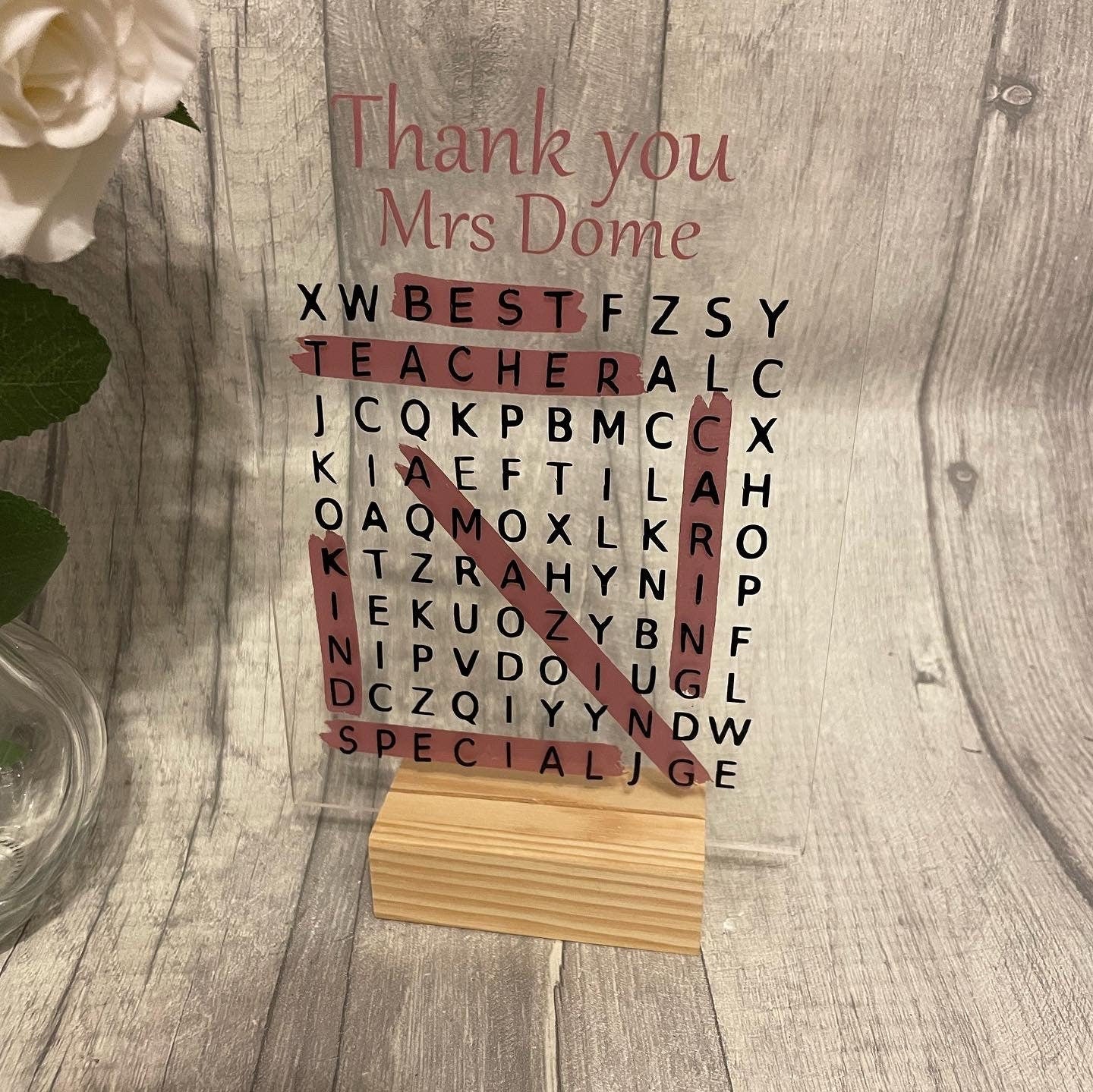 Personalised acrylic plaque, acrylic standing sign with wooden block. Teacher thank you gift, personalised gifts for teacher