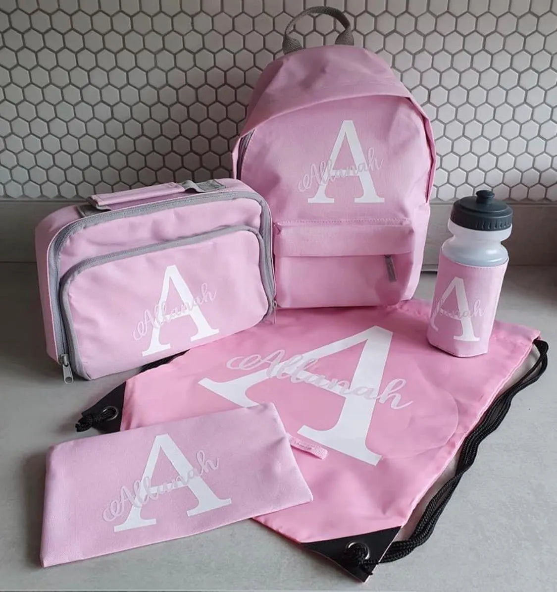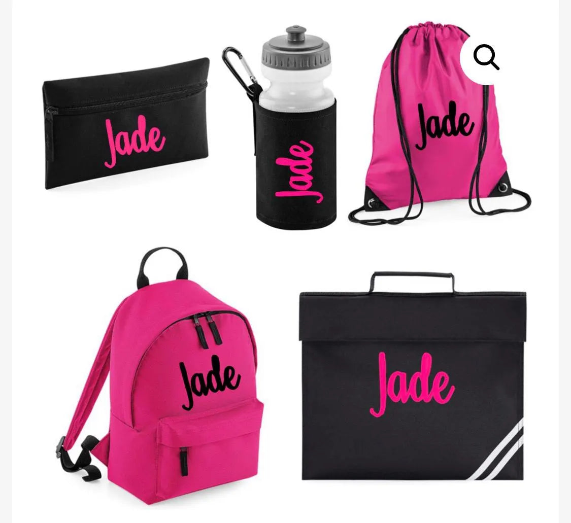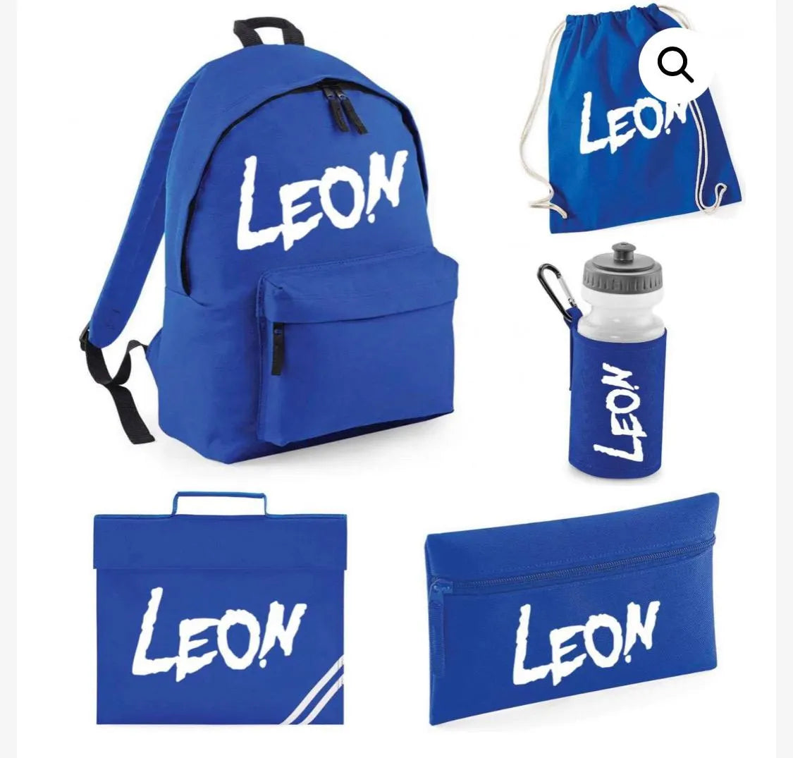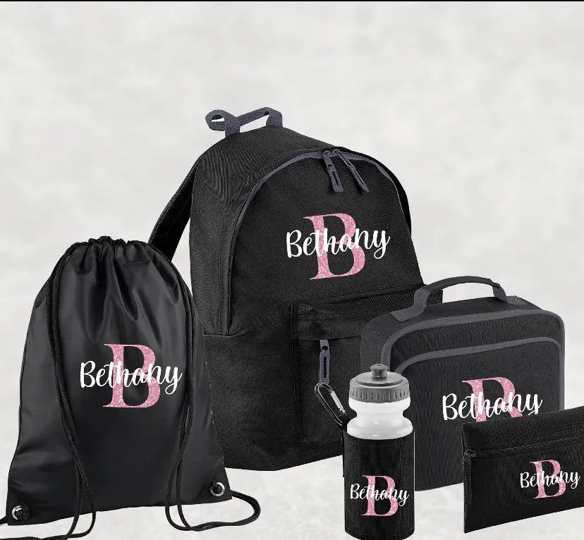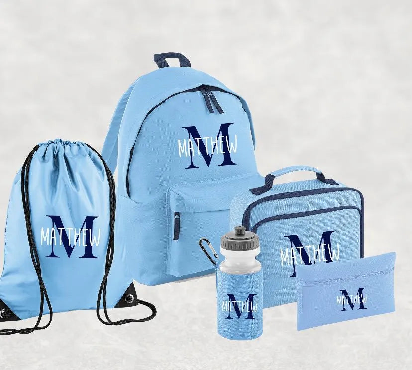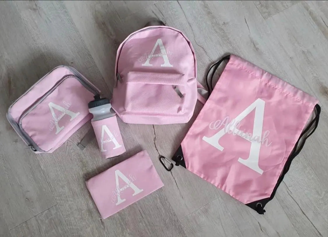 Personalised Backpack, Kids Boys Girls Initial Name, Lunch Bag, Water Bottle and Pencil Case, PE Bag School Bag, Back To School bag set