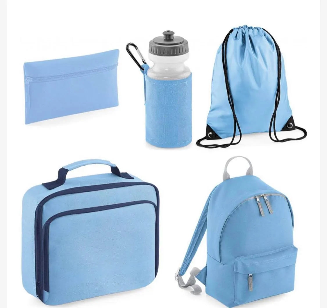 Set of 6 -Water Bottle, Lunch Bag, Back Pack, P.E bag, Book Bag, Pencil Case