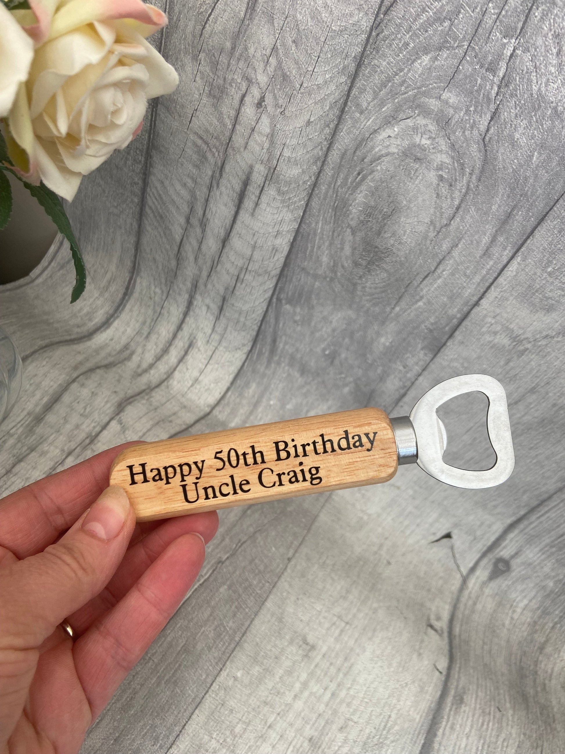 If you're looking for a simple yet heartfelt gift for your dad, daddy, grandad then this wooden bottle opener with a personalised message can be a great choice.
