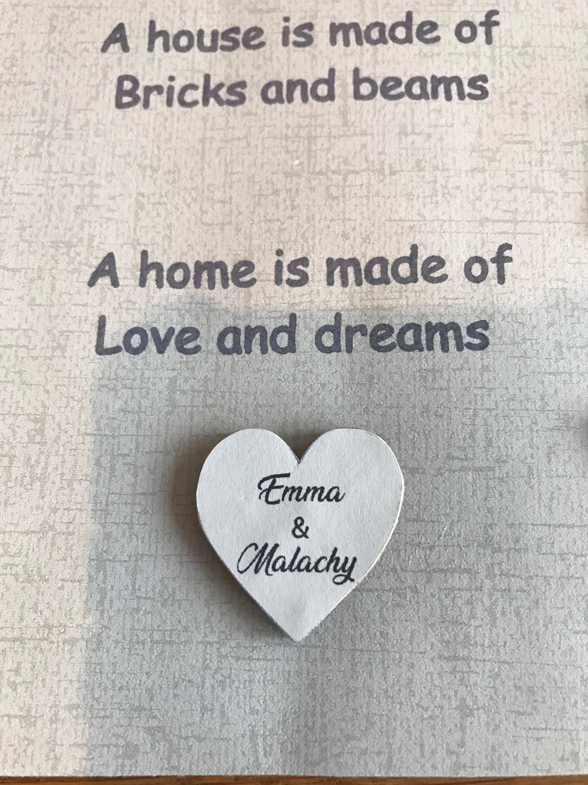 message in the ‘note to seller’ section with the names and date for the heart and if you would like it to say first home or new home, home sweet home etc or