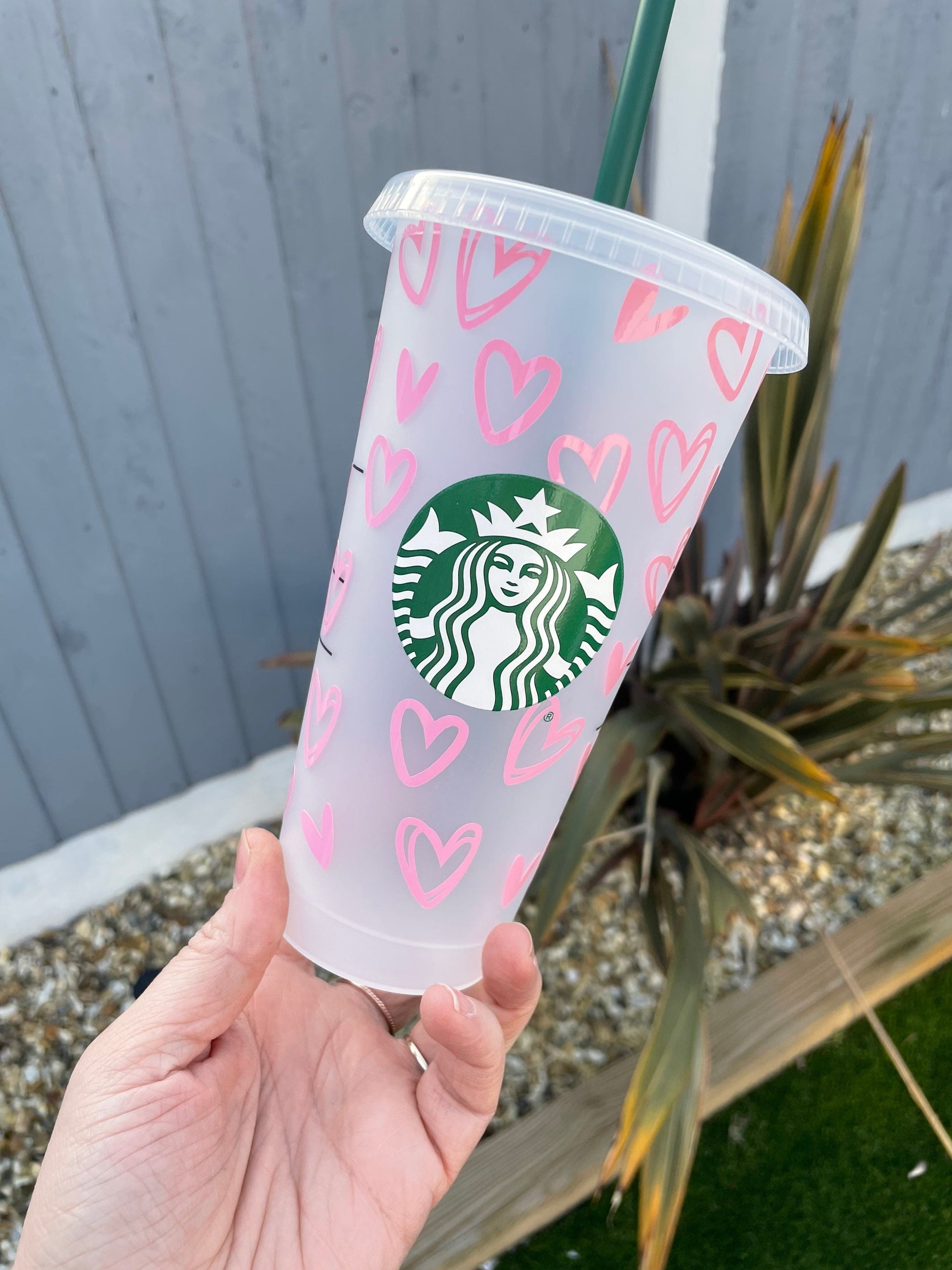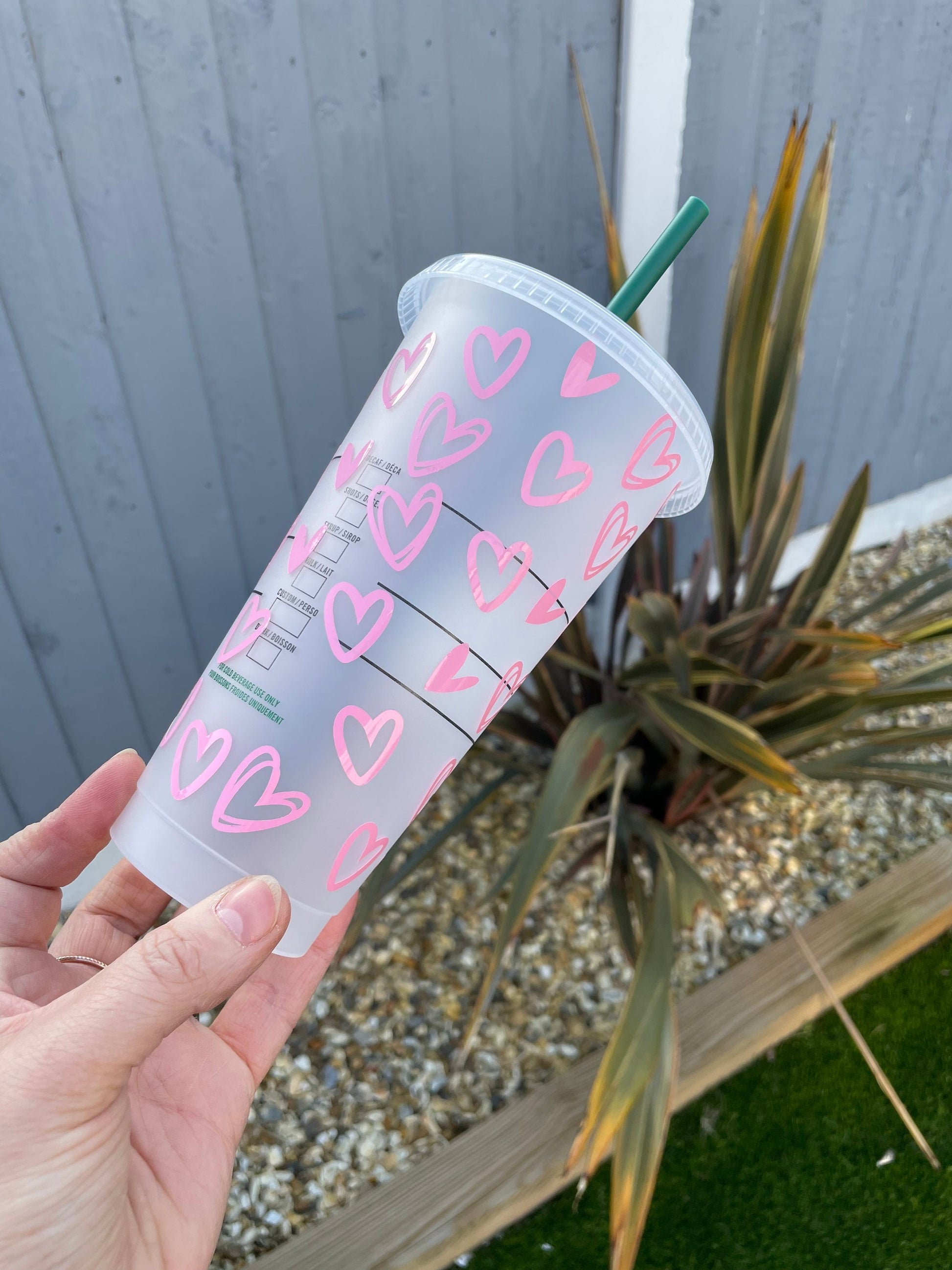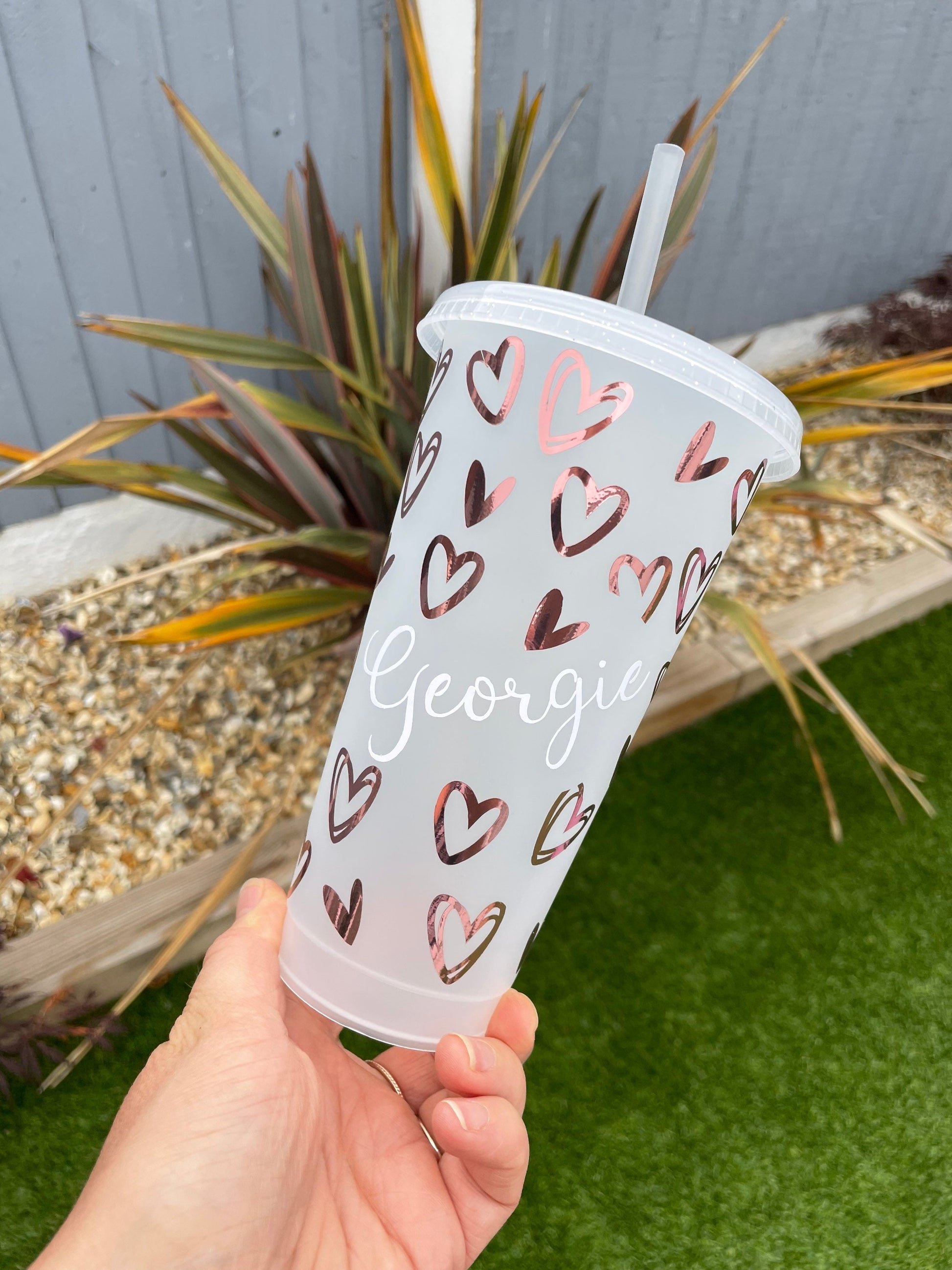 Personalised plastic cup, drinks tumbler, drinking bottle, cold cup, love hearts plastic cup