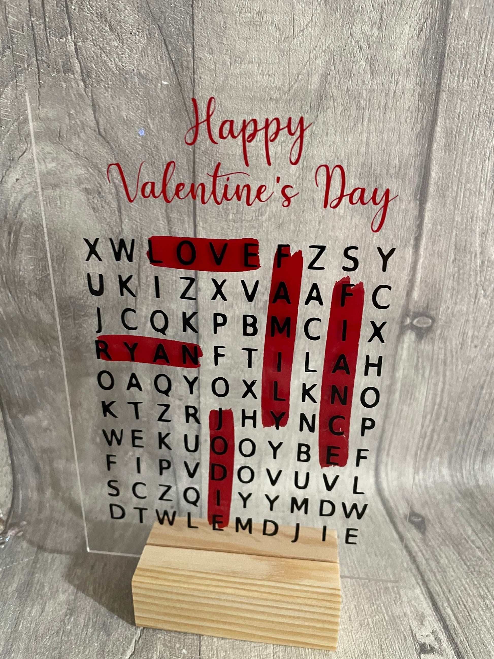 Personalised Valentine’s Day gift, word search plaques,Valentine’s Day Plaque, Acrylic plaque, gift for her, gift for him,l