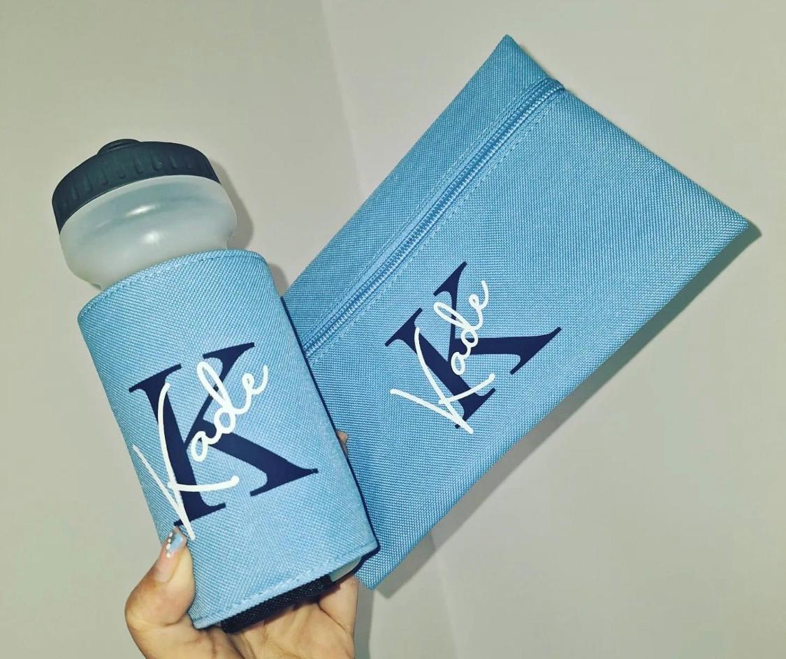 This personalised water bottle and holder set is the perfect back-to-school accessory for your little one.