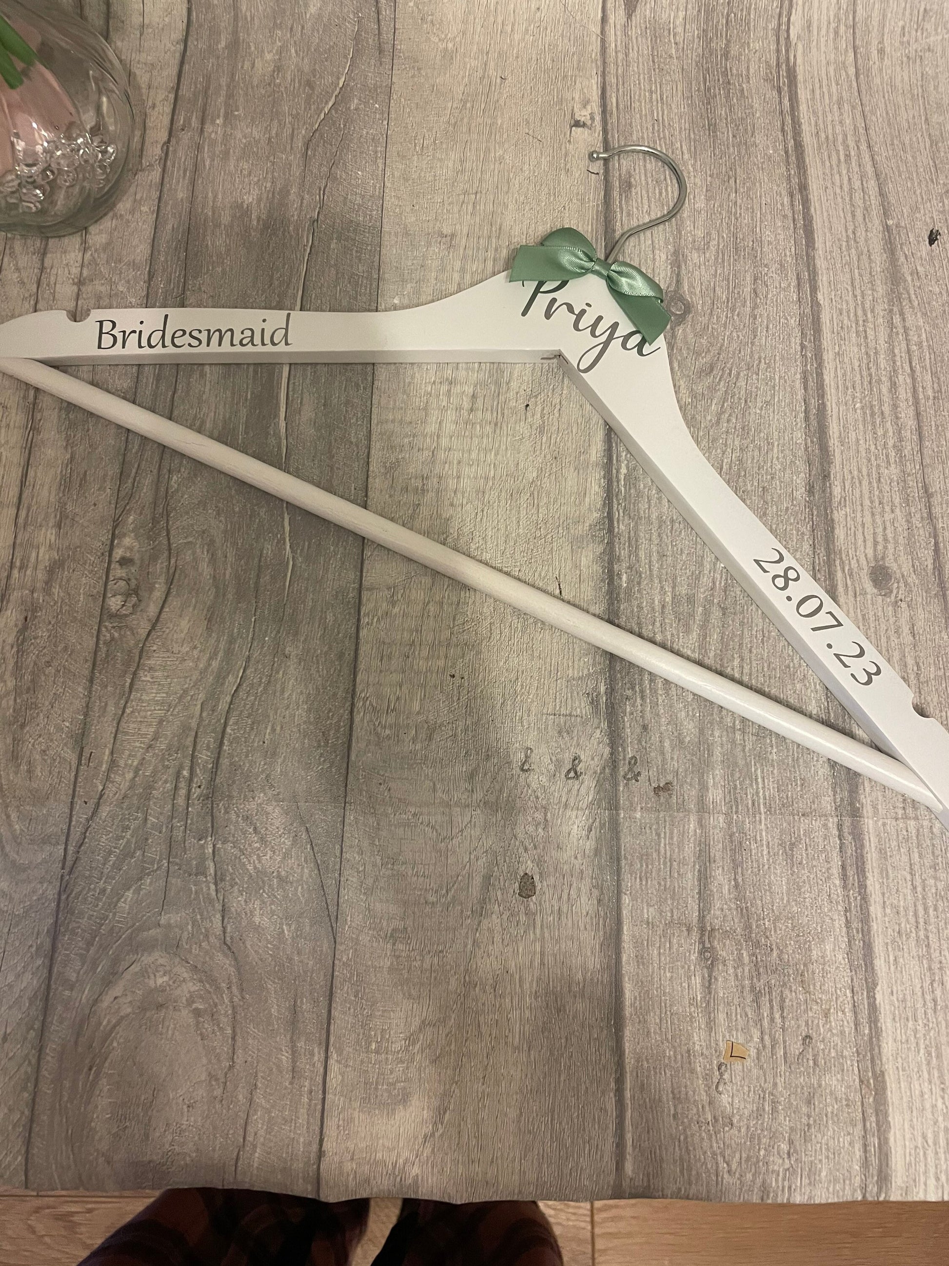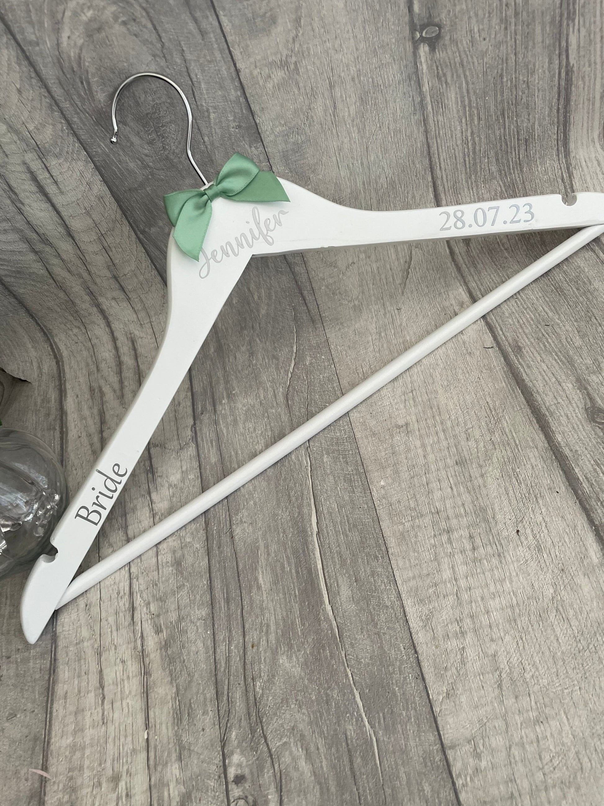 Personalised White wooden coat hanger perfect for your wedding day, and bridal party.