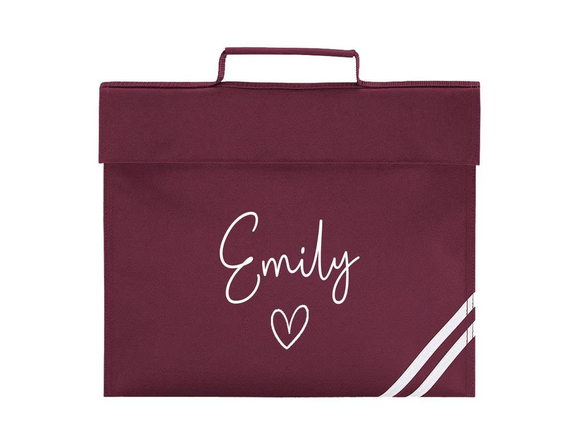 School Book Bag | Heart | Back to School | Personalised Bookbag | Girls | Boys | School Bag with Name | Choice of Colours..