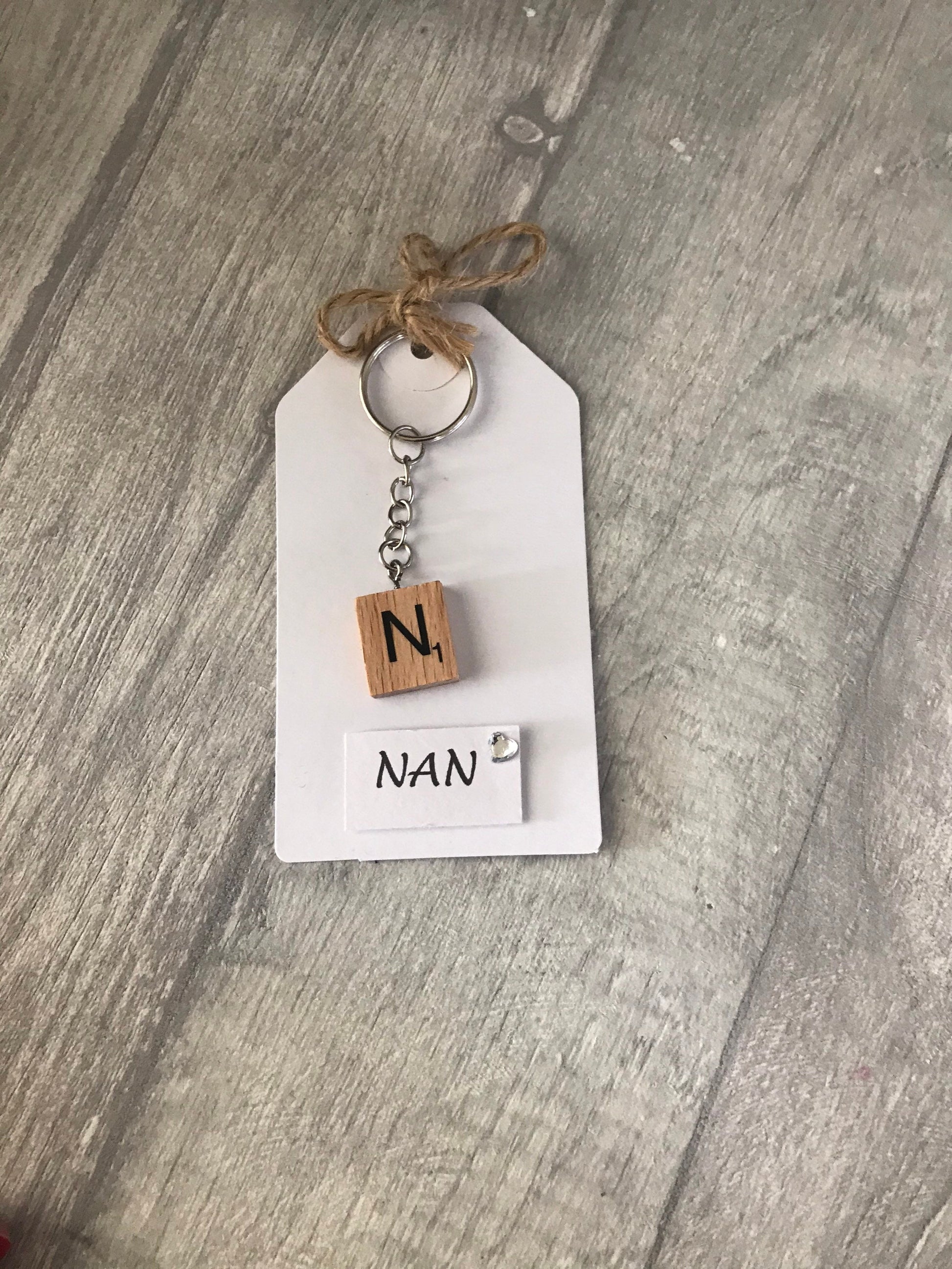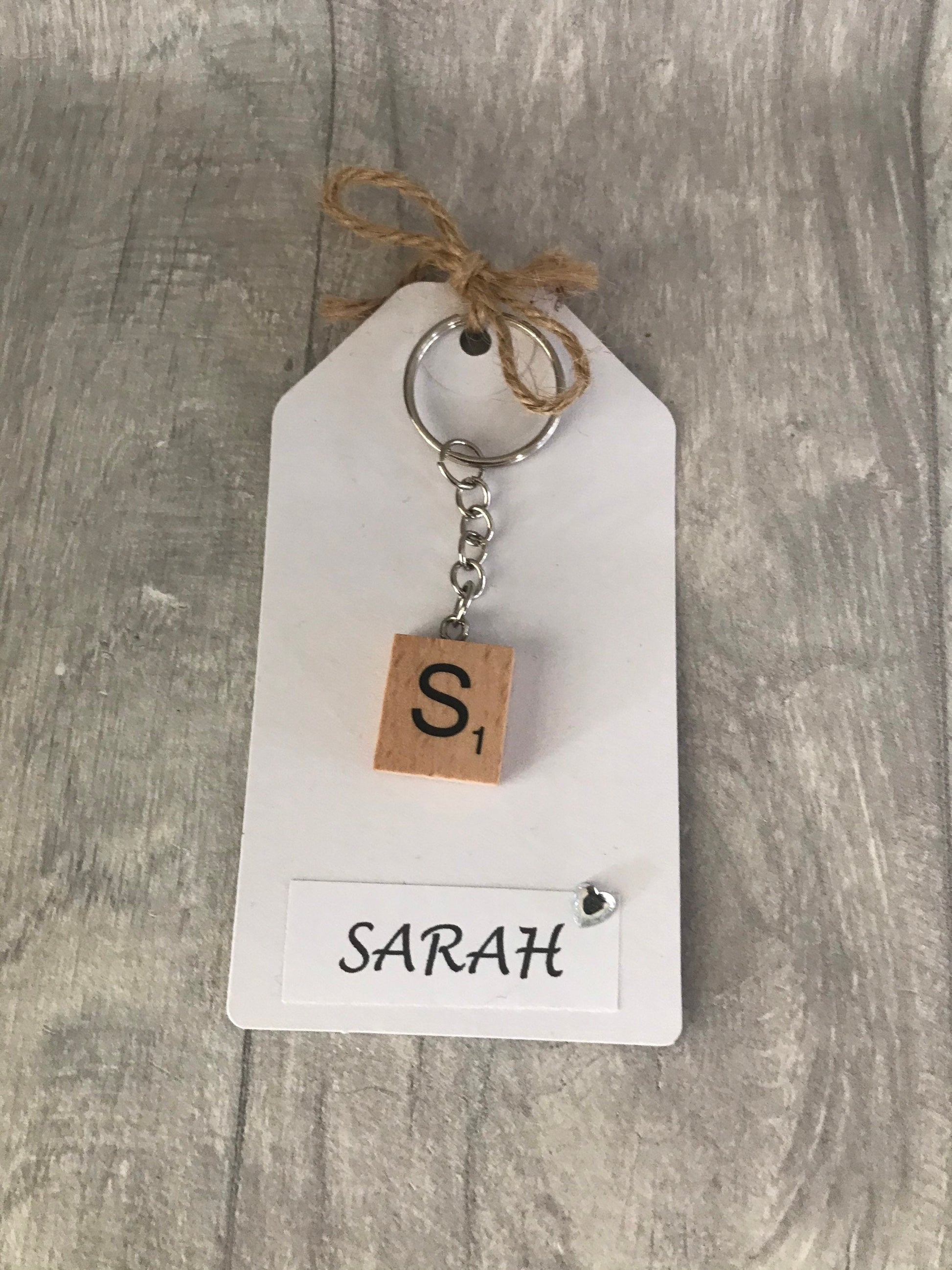 Personalise your keys with a scrabble letter keyring and gift card with the recipients name..