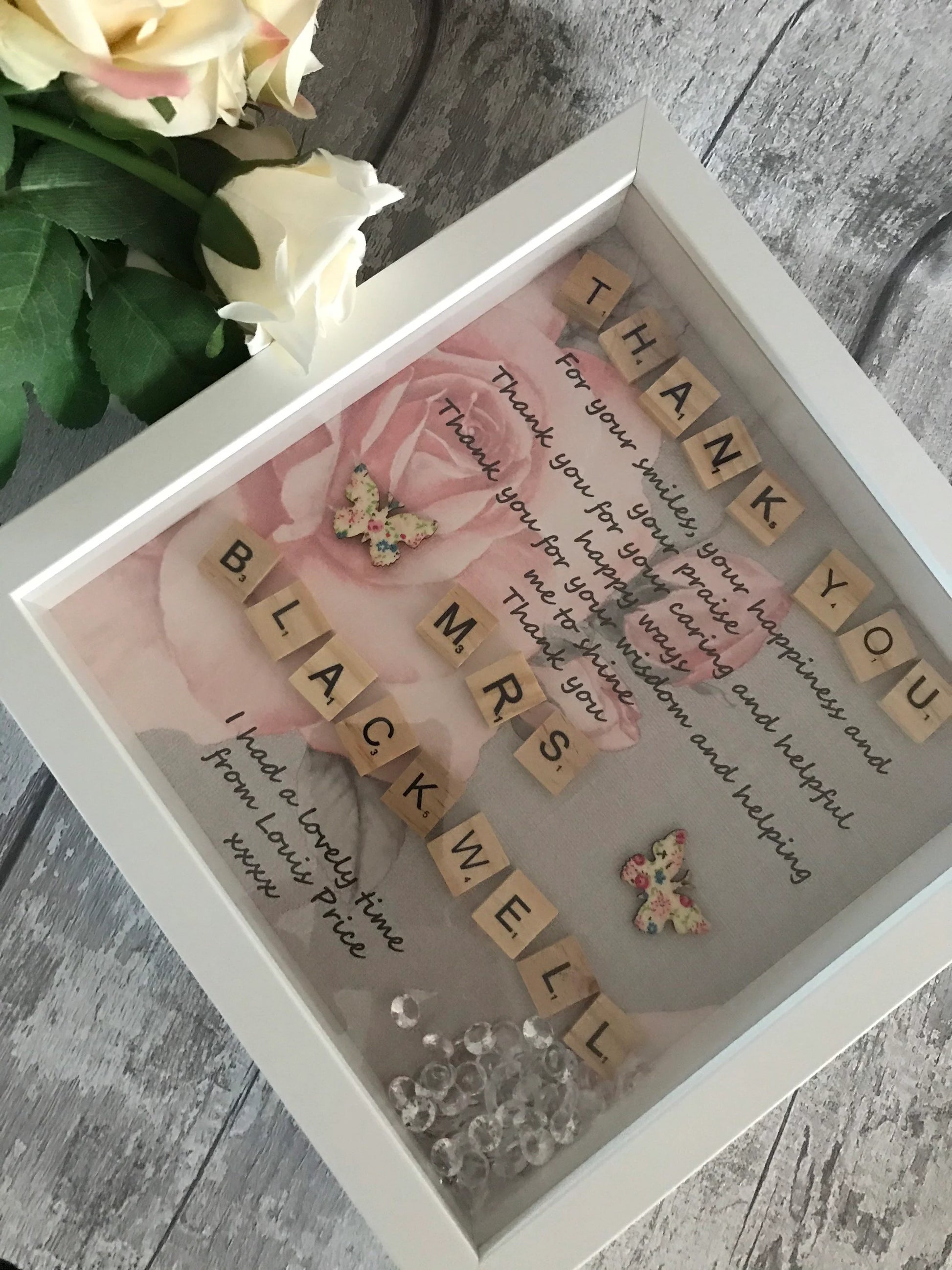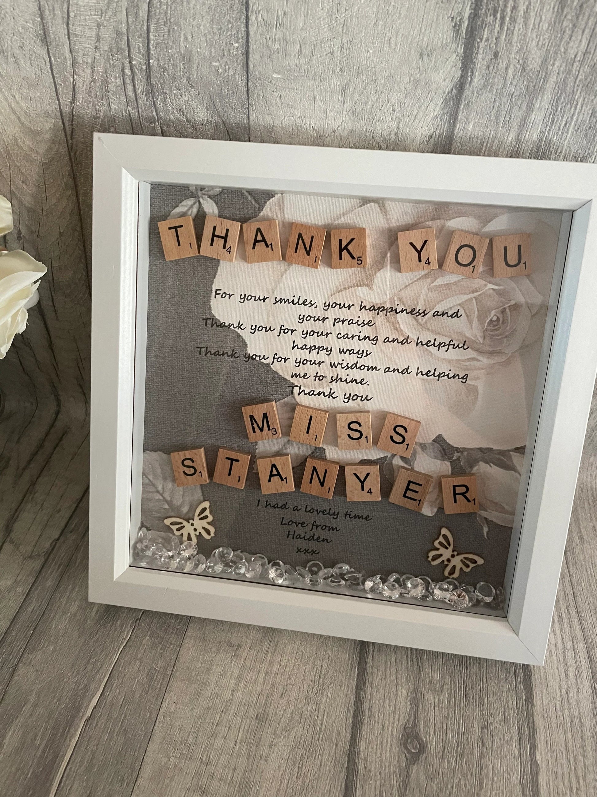 Teacher thank you gift, Personalised Thank You gift , Scrabble box Frame