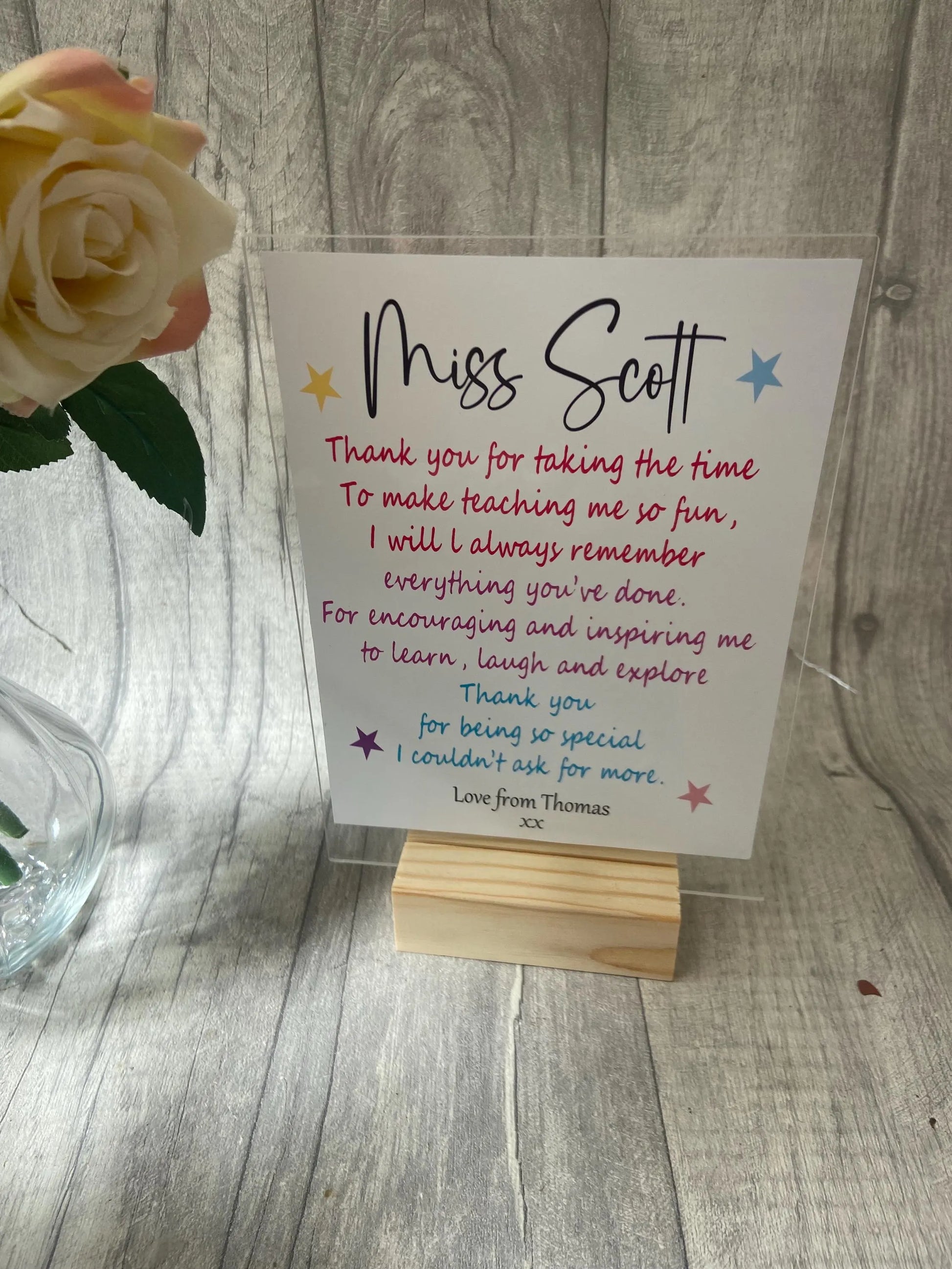 Thank You Gift, Personalised acrylic plaque, acrylic standing sign, personalised gifts for teacher, Teacher Plaque
