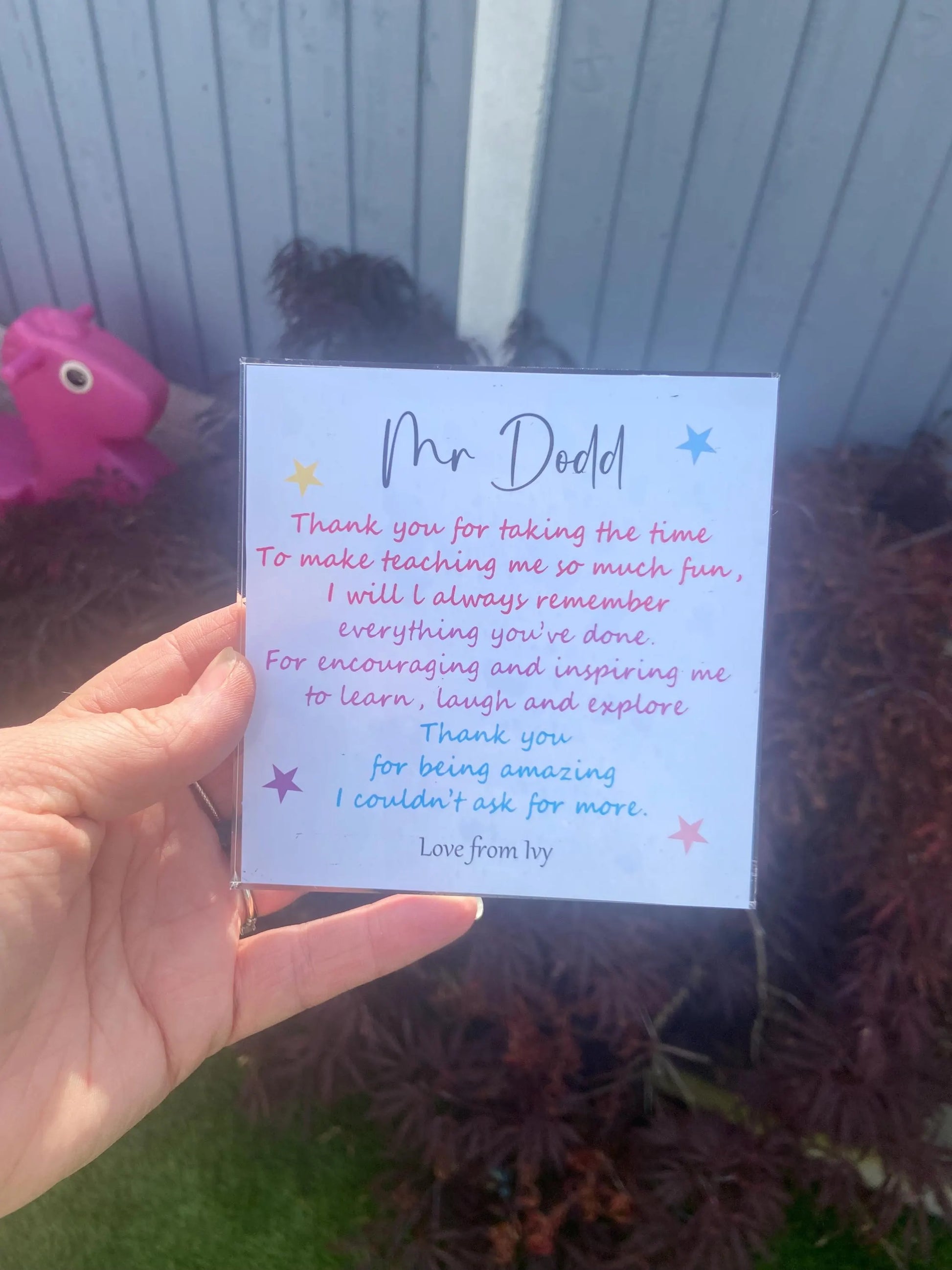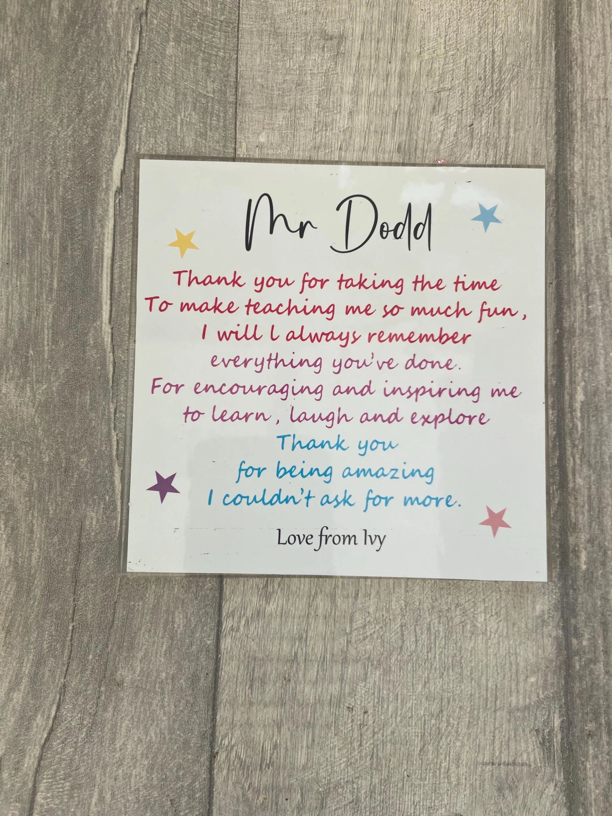 Our beautiful personalised acrylic plaques are a wonderful gift for those special teachers, something unique and special to say thank you.